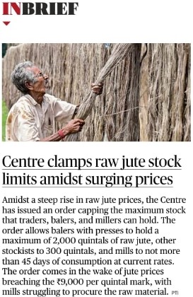 UPSC Prelims Q. With reference to the recent stock limits imposed on raw jute in India (September 2025), consider the following statements: