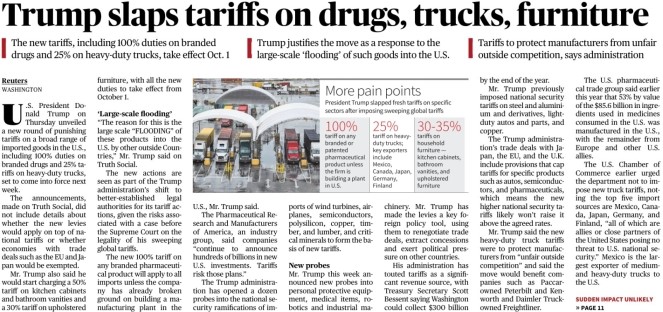 | 5. | Trump Slaps Tariffs on Drugs, Trucks, Furniture |
