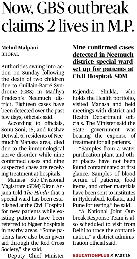 | 8. | Now, GBS outbreak claims 2 lives in M.P. | |