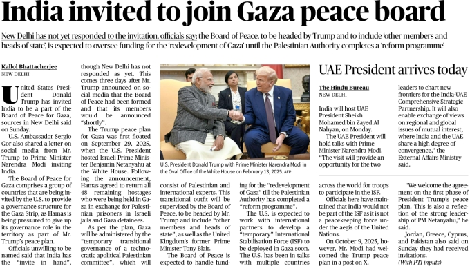 | 5. | India invited to join Gaza peace board | |
