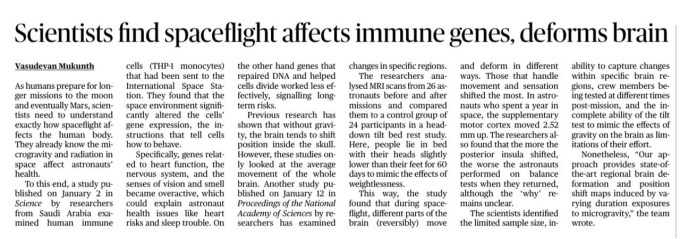 | 7. | Scientists find spaceflight affects immune genes, deforms brain | |