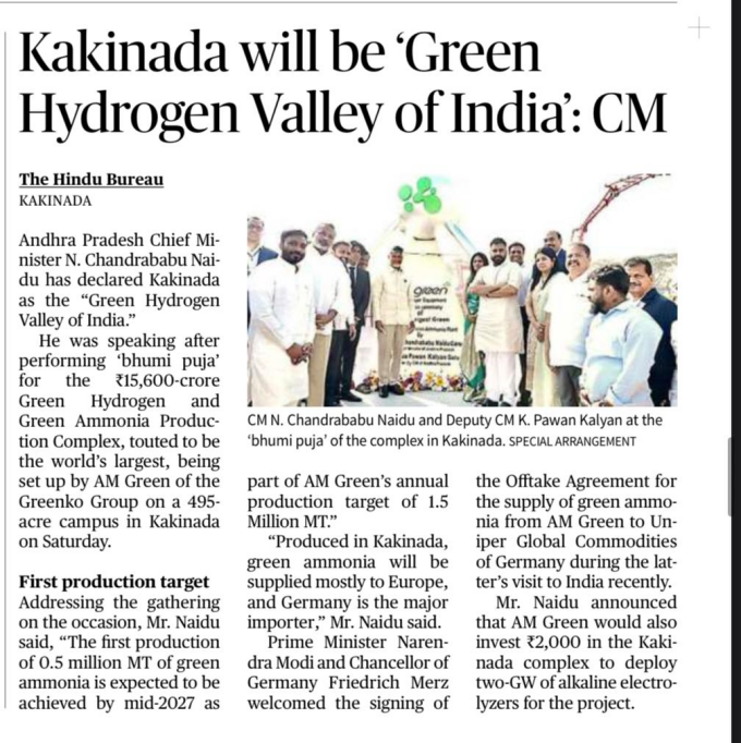 | 9. | Kakinada will be ‘Green Hydrogen Valley of India’: CM | |