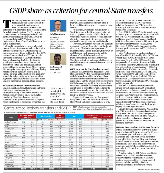 | 2. | GSDP share as criterion for central-State transfers | |