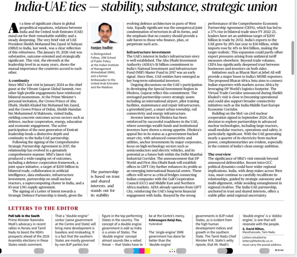 | 2. | India–UAE ties — stability, substance, strategic union | |