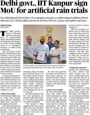 | 3. | Delhi govt., IIT Kanpur sign MoU for artificial rain trials |