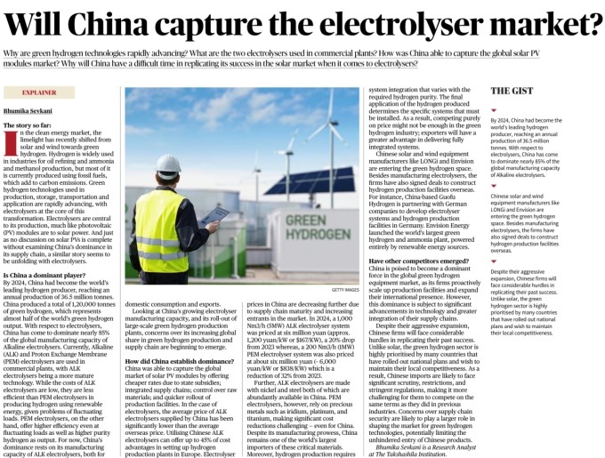 - Much like China’s dominance in solar photovoltaic (PV) modules, questions are being raised about whether it can replicate similar success in the electrolyser market.