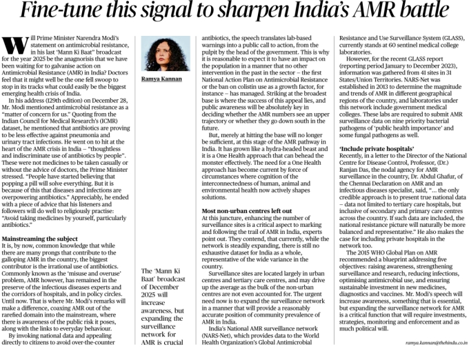 The author analyses the significance of the Prime Minister’s recent public warning on antimicrobial resistance (AMR) and argues that while political signalling has raised awareness, India now needs deeper surveillance, systemic reforms, and a One Health approach to effectively tackle the growing AMR crisis.