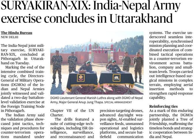 5. | SURYAKIRAN-XIX: India-Nepal Army exercise concludes in Uttarakhand | |