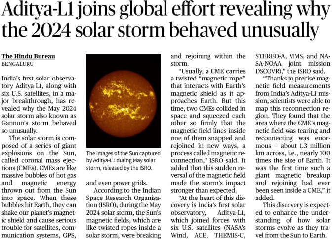 | 3. | Aditya-L1 joins global effort revealing why the 2024 solar storm behaved unusually | |