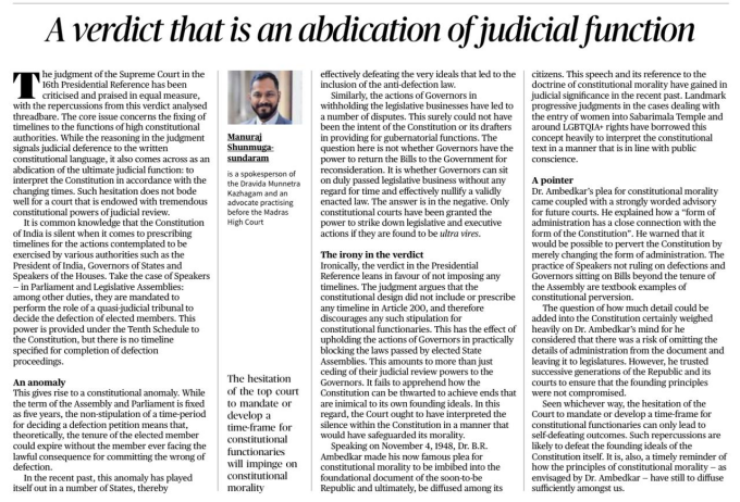 - Citing Ambedkar, the piece argues for constitutional morality — judges should ensure administration conforms to the spirit of the Constitution, not merely its letter.