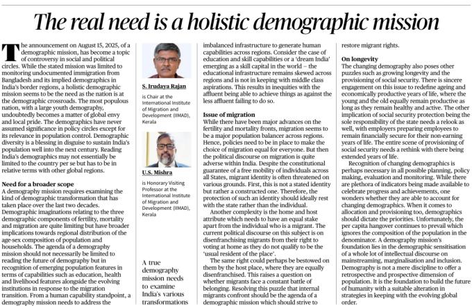 “India’s demographic challenge is not one of numbers but of inclusion and capability distribution.” Discuss in the context of the need for a holistic demographic mission.