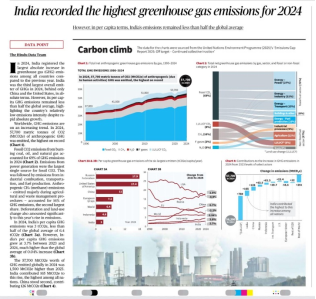 1. In 2024, India recorded the largest absolute increase in greenhouse gas emissions among all countries.