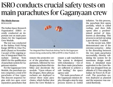 | 5. | ISRO Conducts Crucial Safety Tests on Main Parachutes for Gaganyaan Crew | |