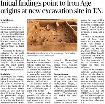 | 6. | Initial findings point to Iron Age origins at new excavation site in T.N. |