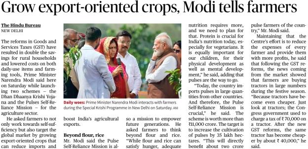 Context: The Prime Minister of India launched the Pradhan Mantri Dhan-Dhaanya Krishi Yojana (PMDDKY) — a landmark agricultural reform programme aimed at transforming farming practices in 100 low-performing districts across the country.