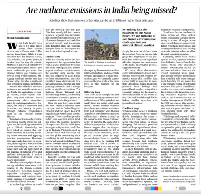 The article examines evidence from satellite observations suggesting that India’s methane emissions, especially from landfills and waste sites, may be significantly underreported in official inventories, raising concerns about climate mitigation accuracy.