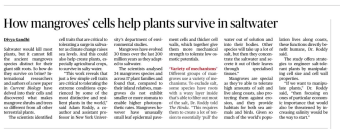 | 5. | How mangroves’ cells help plants survive in saltwater | |