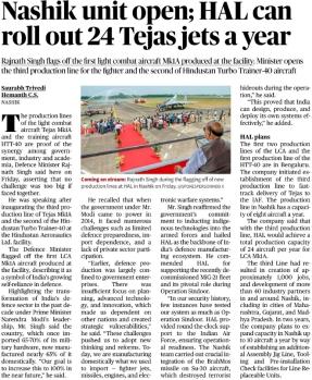 | 6. | Nashik unit open; HAL can roll out 24 Tejas jets a year |