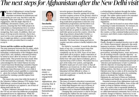 Afghanistan’s Acting Foreign Minister Amir Khan Muttaqi’s visit to New Delhi marks a significant step in India’s cautious re-engagement with the Taliban regime. · The visit represents India’s humanitarian and strategic balancing approach towards a war-torn, politically unstable neighbour that still poses major security and geopolitical challenges. · The article, written by Tara Kartha, former Director of the National Security Council Secretariat, outlines how India can take a step-by-step engagement strategy to stabilise Afghanistan while protecting its own interests and preventing regional instability.