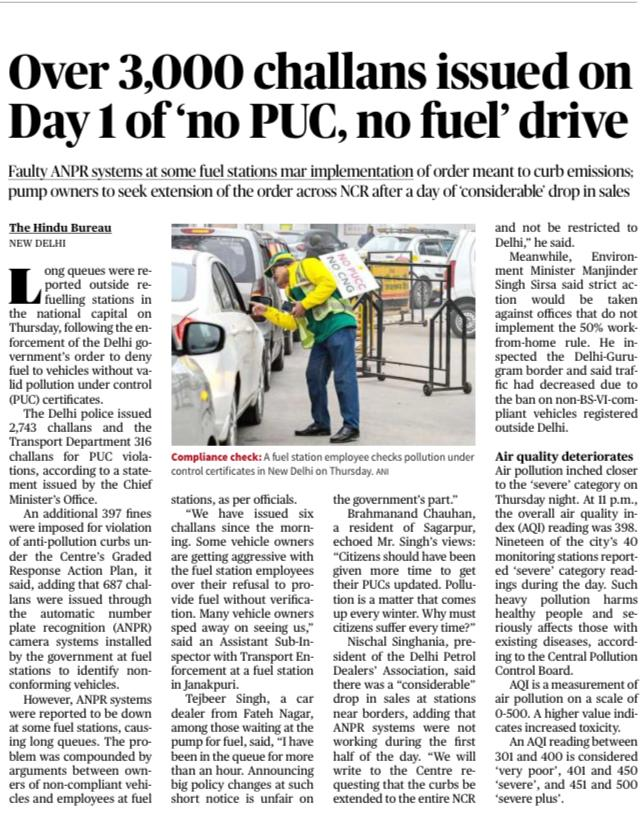 3. Over 3,000 challans issued on Day 1 of ‘no PUC, no fuel’ drive