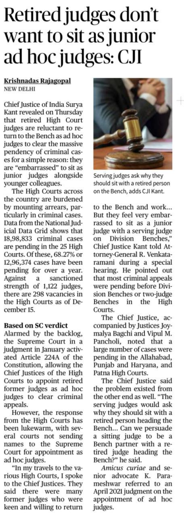 4. Retired judges don’t want to sit as junior ad hoc judges: CJI