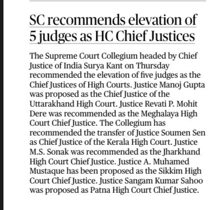 5. SC recommends elevation of 5 judges as HC Chief Justices