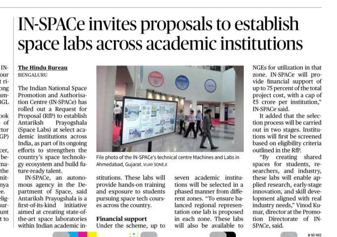 | IN-SPACe invites proposals to establish space labs across academic institutions | |