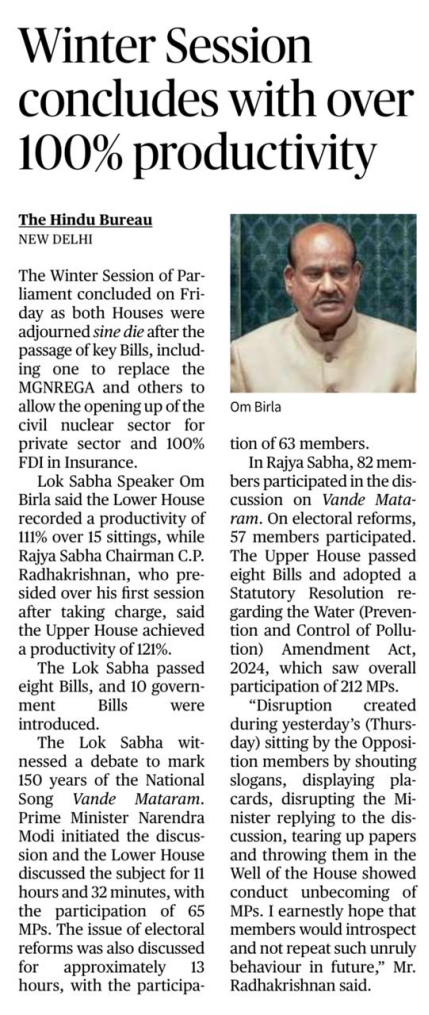| Winter Session concludes with over 100% productivity | |