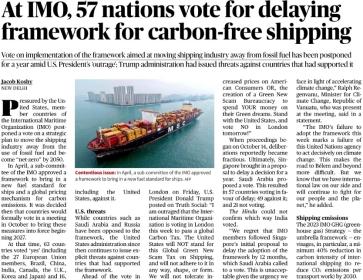 | 6. | At IMO, 57 nations vote for delaying framework for carbon-free shipping |