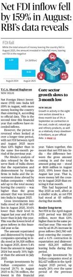 | 3. | Net FDI inflow fell by 159% in August: RBI’s data reveals |