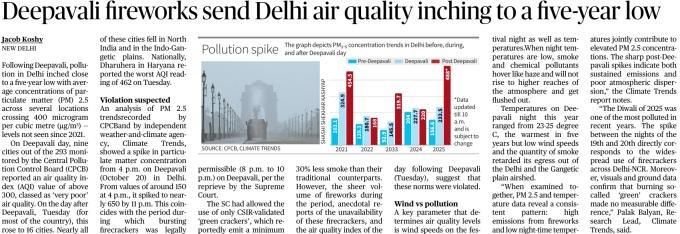 | 4. | Deepavali fireworks send Delhi air quality inching to a five-year low |