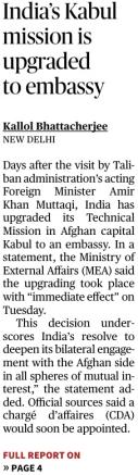 | 5. | India’s Kabul mission is upgraded to embassy |