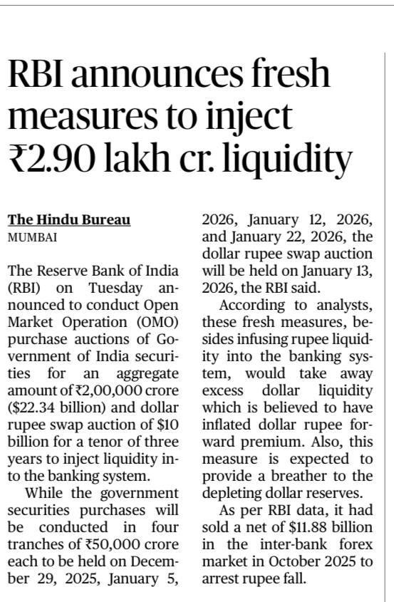 5. RBI announces fresh measures to inject ₹2.90 lakh cr. Liquidity