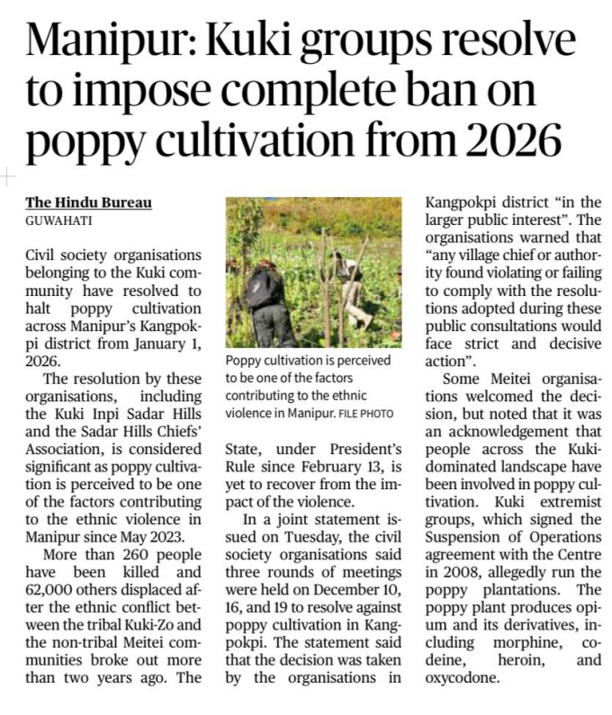 7. Manipur: Kuki groups resolve to impose complete ban on poppy cultivation from 2026