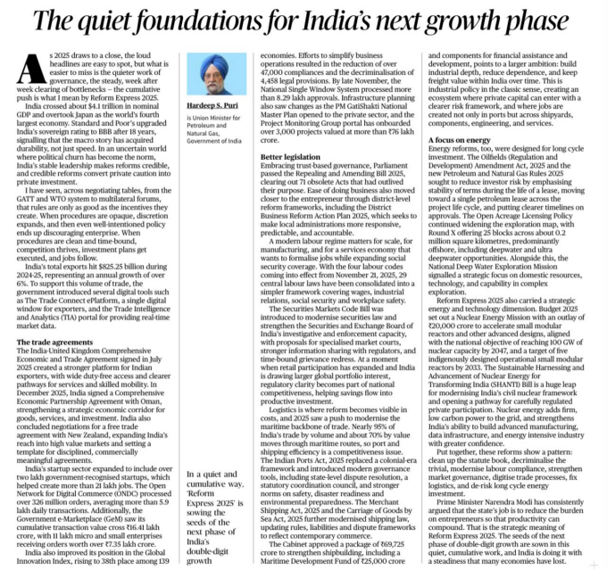 The article examines how India’s recent economic reforms—though less headline-grabbing—are quietly laying the groundwork for sustained long-term growth. It highlights structural reforms, institutional strengthening, and policy consistency as the real drivers of India’s next economic phase.