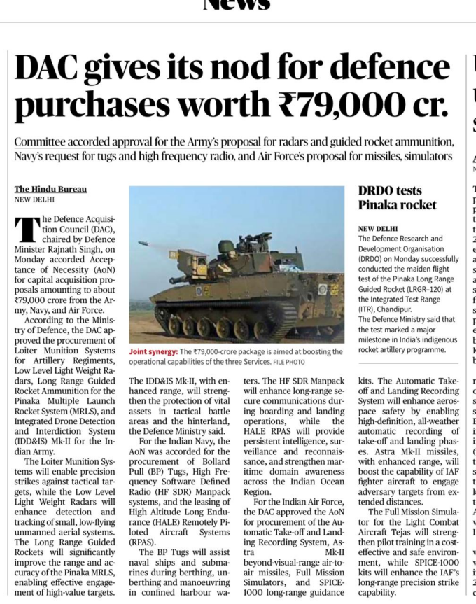 | 4. | DAC gives its nod for defence purchases worth ₹79,000 crore |