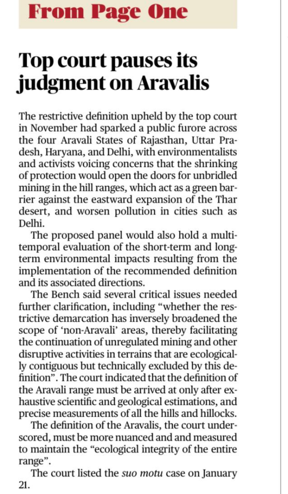 | 6. | Top court pauses its judgment on Aravallis |