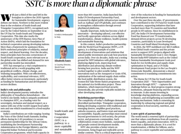 - The editorial highlights India’s role in SSTC as a leader in providing replicable, cost-effective, and innovative models for global development, particularly in food security, climate resilience, and digital public goods.
