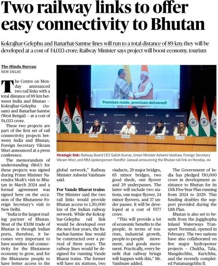 | 4. | Two railway links to offer easy connectivity to Bhutan |