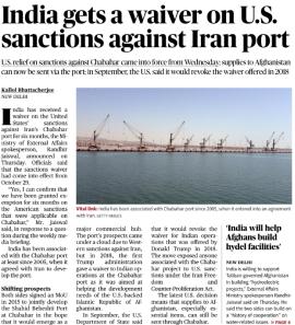 | 4. | India gets a waiver on U.S. sanctions against Iran port | |