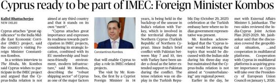| 5. | Cyprus ready to be part of IMEC: Foreign Minister Kombos | |