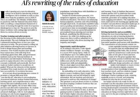 - The government is building a comprehensive AI learning ecosystem across K–12 levels, aligning India with global trends in AI-driven education.
