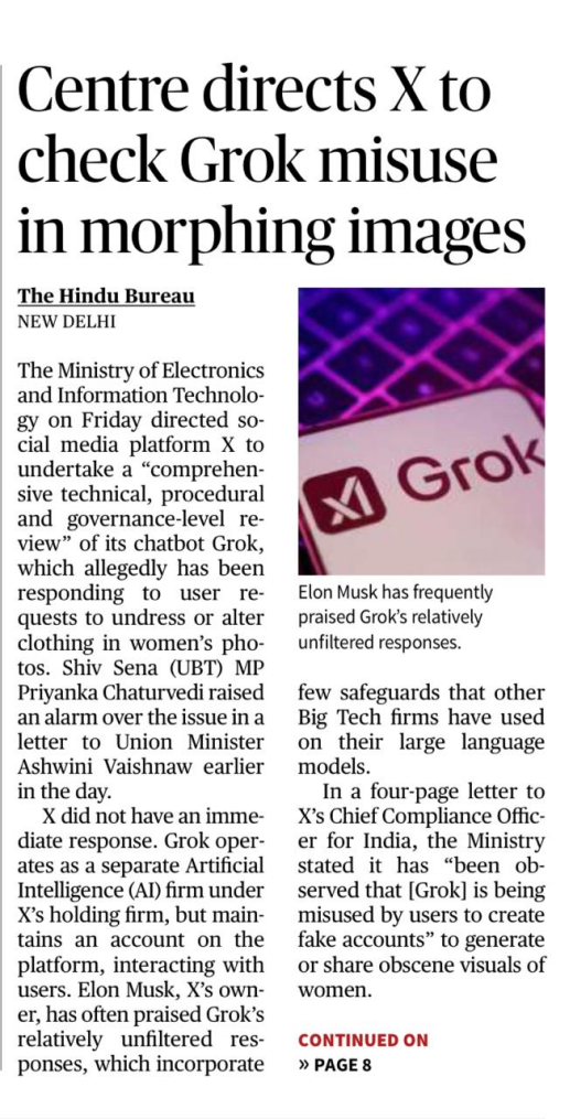 | 6. | Centre directs X to check Grok misuse in morphing images |