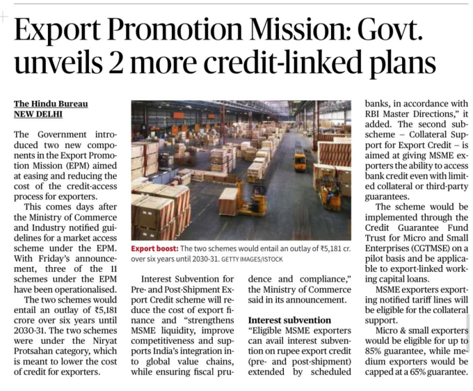 | 4. | Export Promotion Mission: Govt. unveils 2 more credit-linked plans |