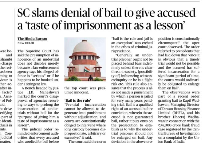 | 3. | SC slams denial of bail to give accused a ‘taste of imprisonment as a lesson’ |