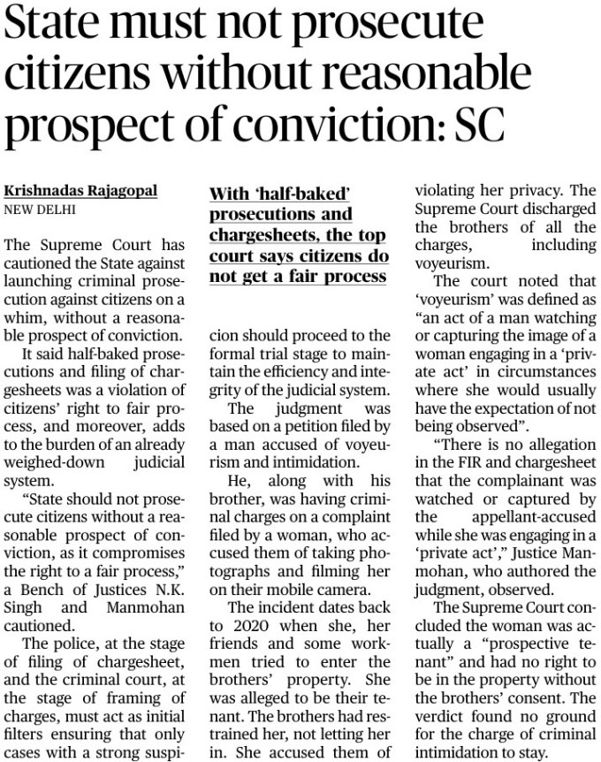 | 6. | State must not prosecute citizens without reasonable prospect of conviction: SC |