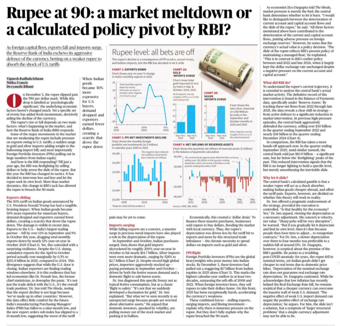 Q. “The recent depreciation of the rupee beyond ₹90 per US dollar reflects both external shocks and a conscious recalibration of RBI’s exchange-rate policy.”