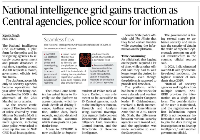 5. | National intelligence grid gains traction as Central agencies, police scour for information | |
