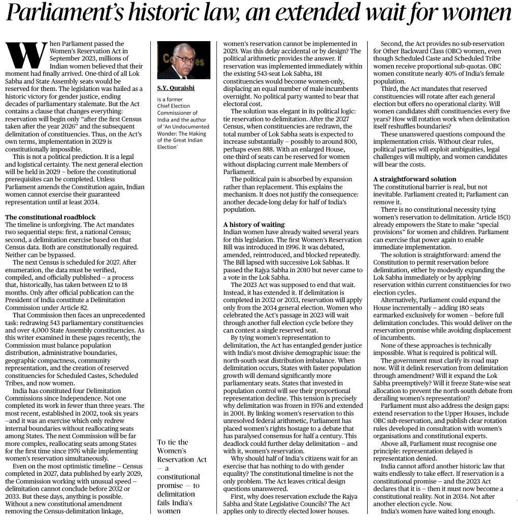Parliament’s historic law, an extended wait for womenGS Paper II: